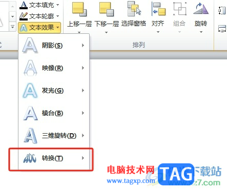 4.在显示出来的下拉选项卡中,用户选择其中的转换选项,右侧将会显示出相关的选项卡