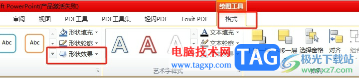 2.在页面上方的菜单栏中点击绘图工具的格式选项,在弹出来的选项卡中,用户选择形状效果选项