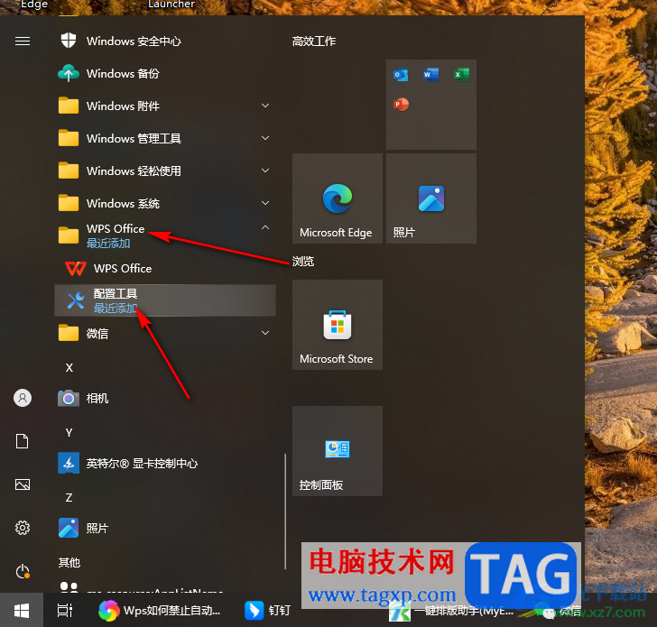 1.首先我们在开始菜单中找到WPS office选项,然后将其进行点打开,选择【配置工具】点击进入。