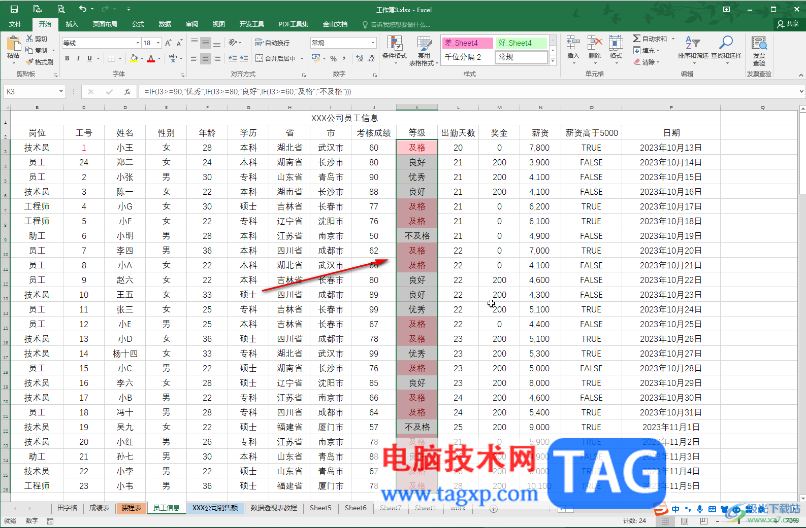 第三步:在打开的窗口中输入需要的内容,比如我们这里输入“及格”,右侧设置想要的突出显示格式,点击“确定”;