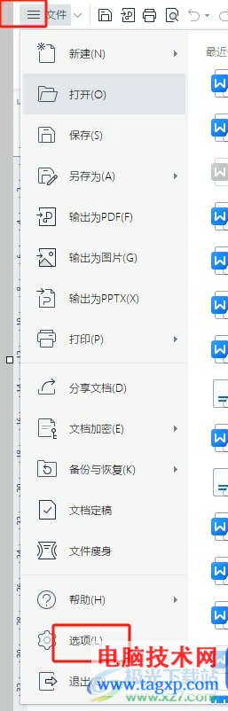 2.接着在页面上方的菜单栏中点击文件选项的三横图标,弹出下拉选项卡,用户选择其中的选项功能