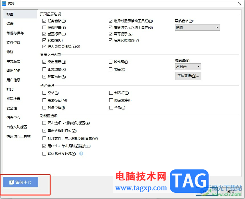 3.进入到选项窗口中,用户点击左下家的备份中心按钮,页面将会发生切换