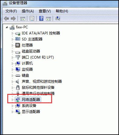 ③在设备管理器对话框下选择“网络适配器”,双击打开