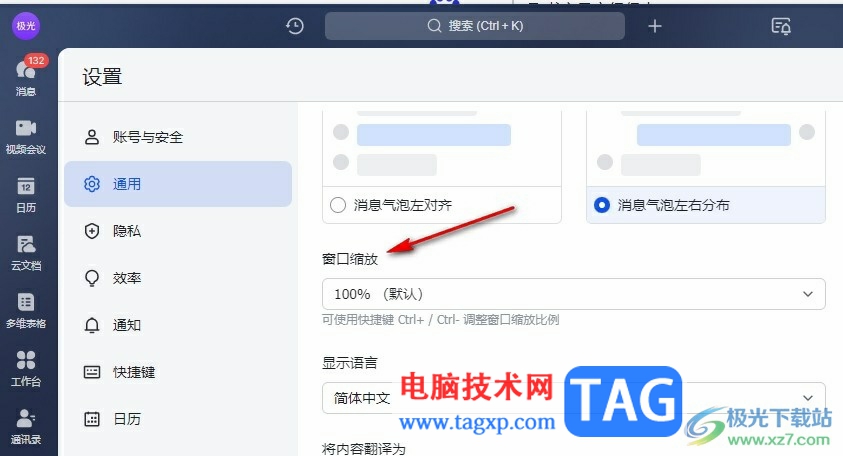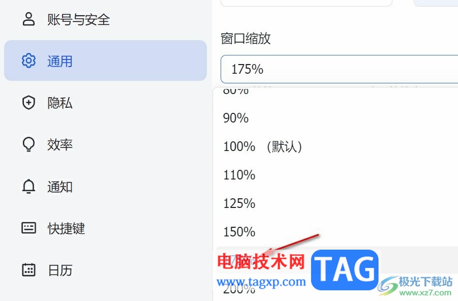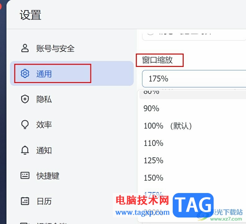 以上就是小编整理总结出的关于飞书调大字体的方法,我们在飞书中先打开自己的头像,然后在选项列表中打开设置选项,接着在通用设置中打开窗口缩放工具,最后在下拉列表中选择一个缩放比例即可,感兴趣的小伙伴快去试试吧。