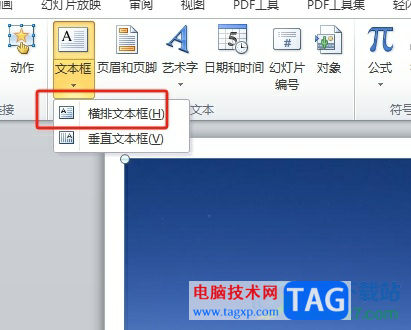 3.在弹出来的下拉选项卡中,用户选择其中的横排文本框选项