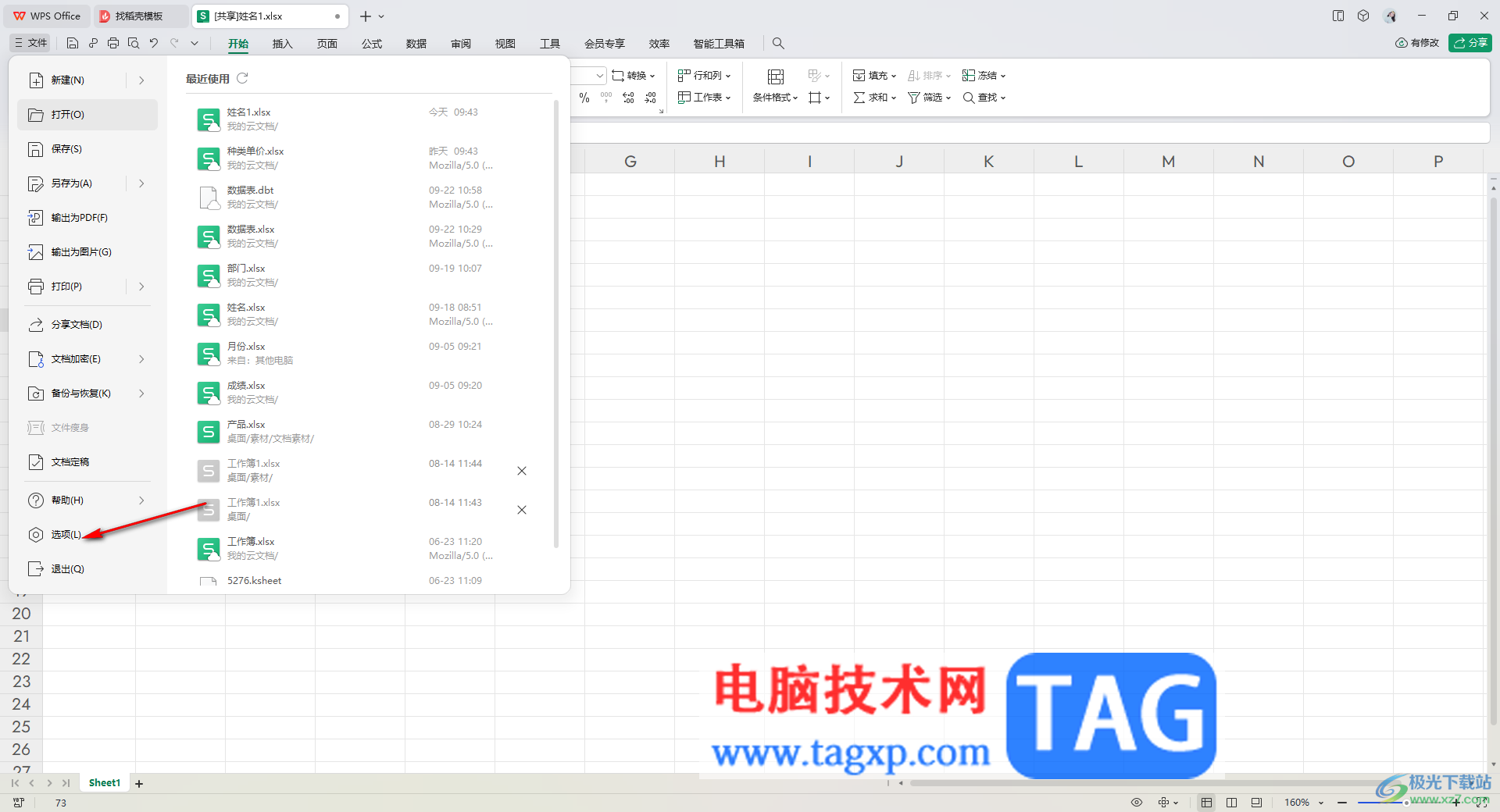 3.在打开的子选项中,只需要将其中的【选项】功能进行点击进入即可。