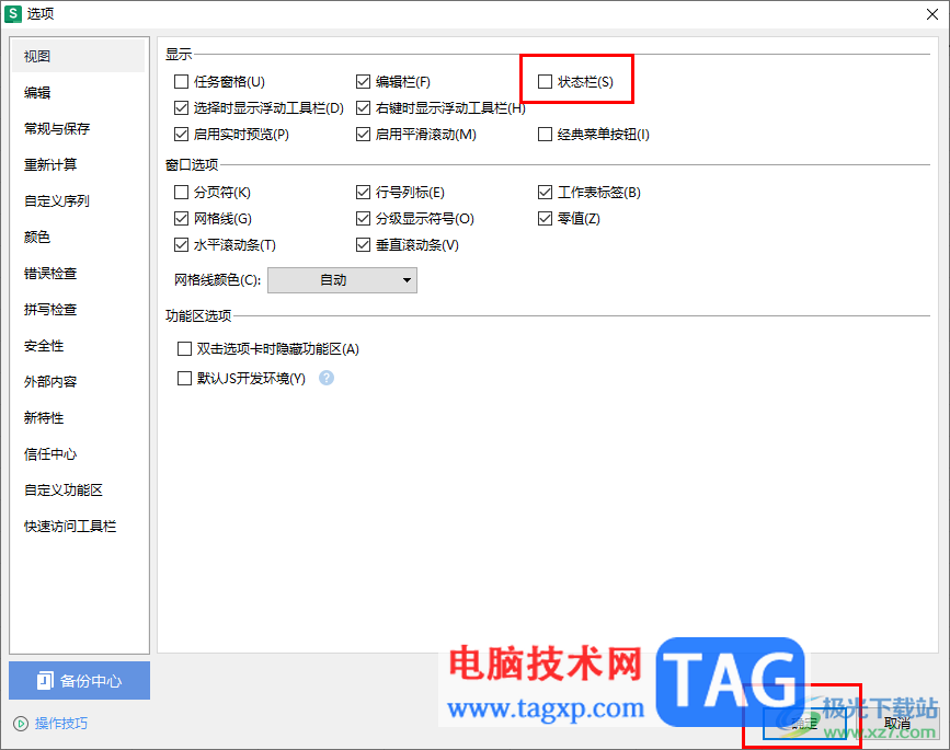 5.我们需要将状态栏进行点击取消勾选,然后点击右下角的确定按钮即可。