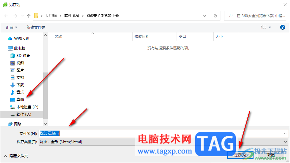 3.之后会在页面上弹出一个保存文件夹的窗口中,在该窗口中选择存放在桌面路径即可,之后点击保存按钮。