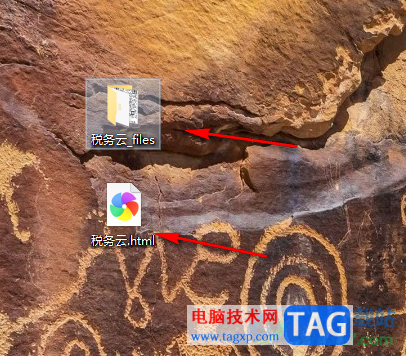 4.随后你可以看到该网页就会保存到电脑桌面上了,在桌面上显示出网页版和源文件夹版,如图所示。