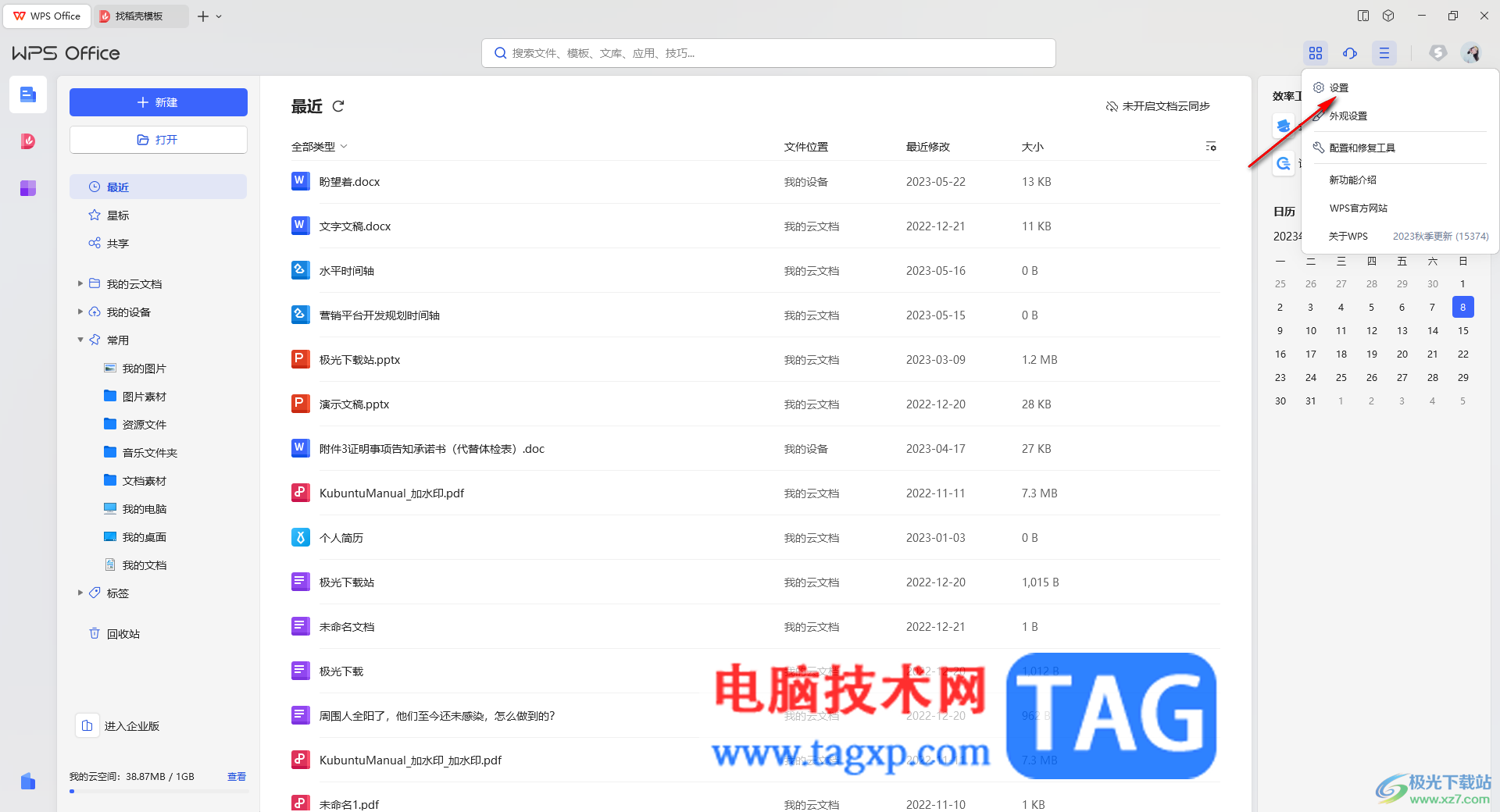 3.随后即可看到该图标下方有几个选项弹出,将其中的【设置】选项用鼠标左键点击一下进入。