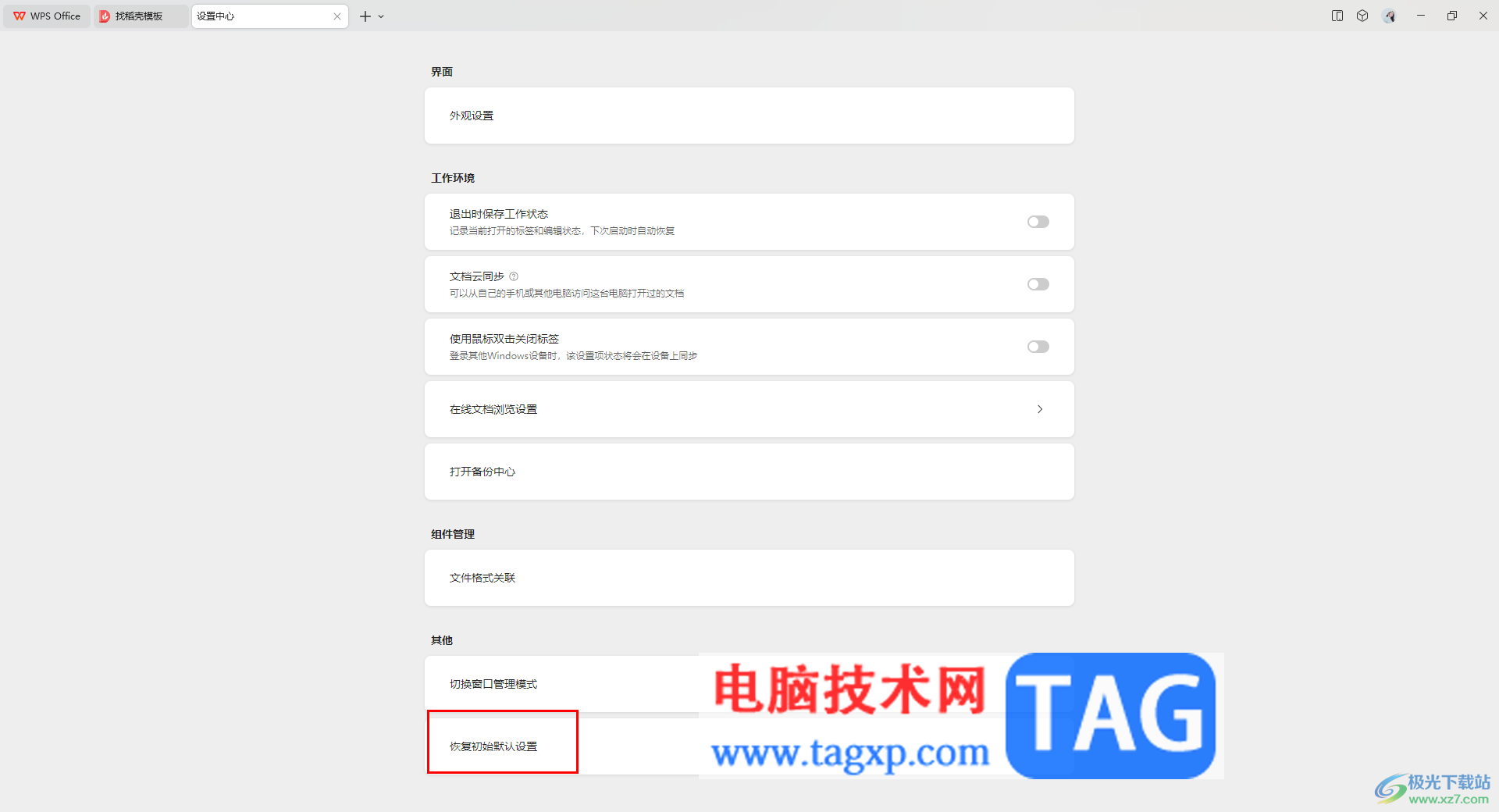 以上就是关于如何使用WPS办公软件恢复到初始默认设置的具体操作方法,一些小伙伴在使用WPS的过程中会进行设置很多的功能选项,想要将这些被修改之后的功能选项进行恢复到初始默认设置,那么就可以按照以上的方法进行操作即可,感兴趣的话可以试试。