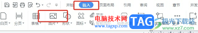 2.在页面上方的菜单栏中点击插入选项,将会显示出相关的选项卡,用户选择其中的图片选项