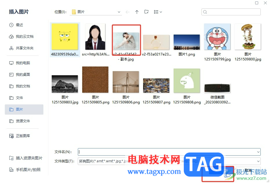 3.进入到文件夹窗口中,用户选择自己喜欢的图片后按下打开按钮即可成功在页面上添加图片