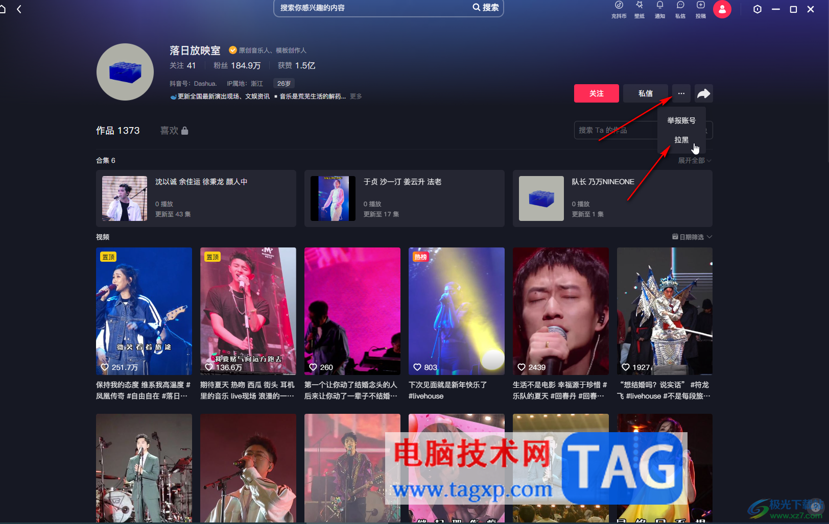 第三步:进入作者主页后,点击如图所示的三个点图标后点击“拉黑”就可以了;