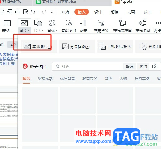 3.这时会弹出下拉选项卡,用户选择其中的本地图片选项