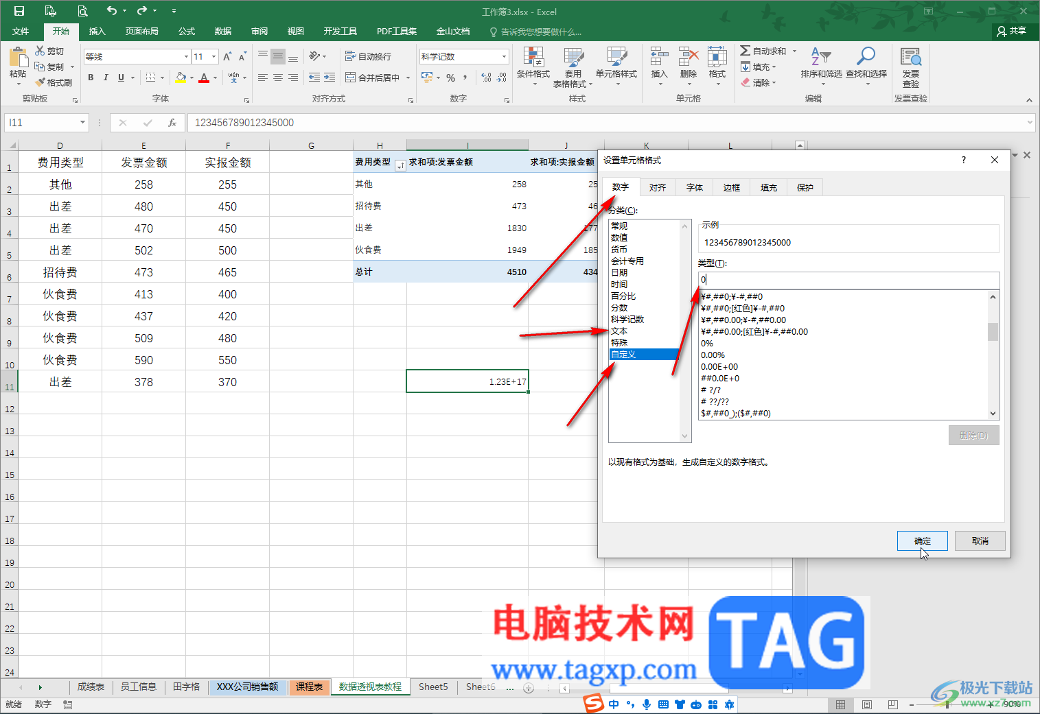 第五步:方法3.点击选中单元格后,按Ctrl+1键,或者右键点击一下后点击“设置单元格格式”,然后点击“数字”——“自定义”——输入0并确定就可以了,也可以选择“文本”并确定后,双击单元格就可以了。