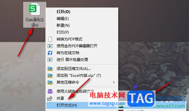 1、第一步,我们在电脑中右键单击一个表格文档,然后先点击“打开方式”选项,再点击Excel选项