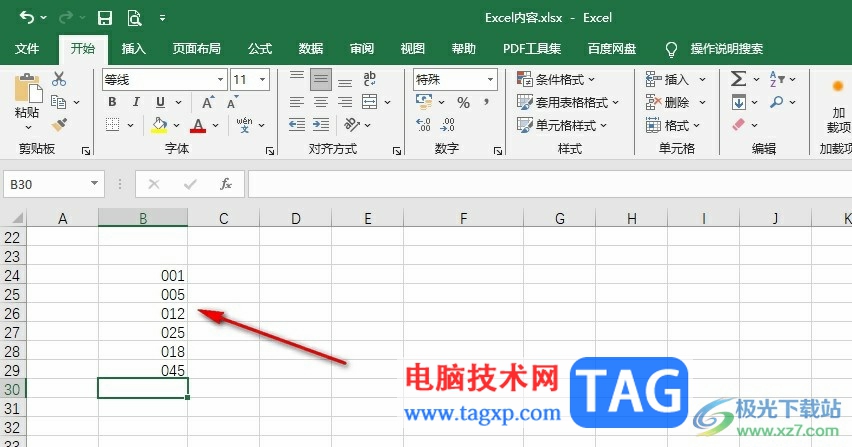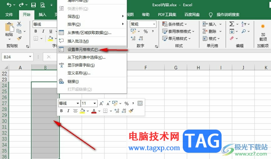 2、第二步,进入Excel页面之后,我们选中需要输入数字的单元格,然后右键单击选择“设置单元格格式”选项