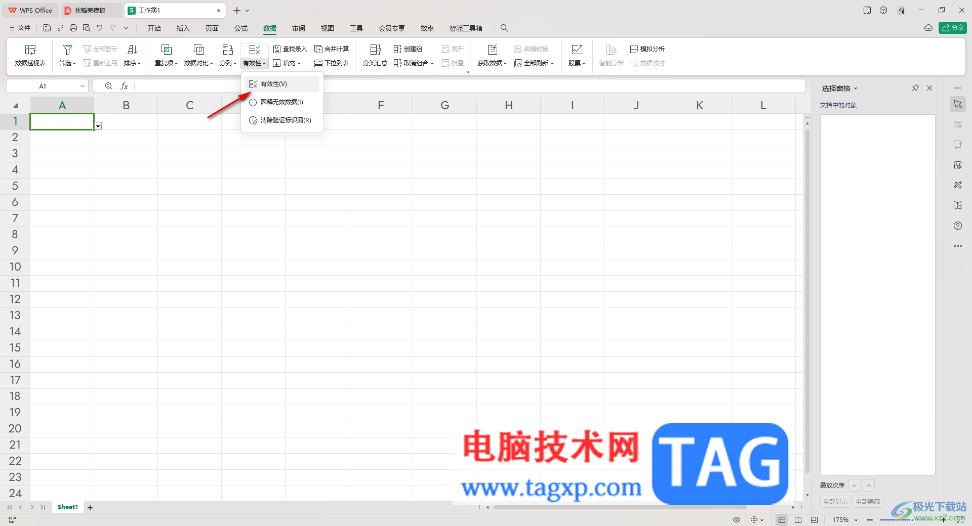 2.想要取消这样的限制条件,可以点击页面顶部的【数据】选项,然后点击工具栏中的【有效性】选项。