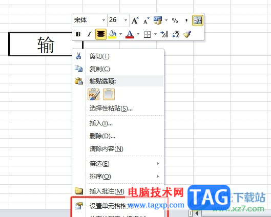 2.接着用鼠标右键点击单元格中的文字,在弹出来的右键菜单中,用户选择其中的设置单元格格式选项