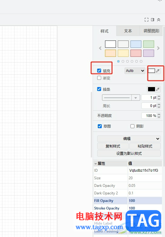 4.这时将图形选中,然后在右侧的样式板块中勾选填充选项并选择颜色选项