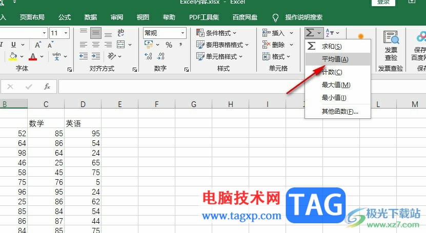 3、第三步,打开计算工具之后,我们在下拉列表中点击选择“平均值”选项