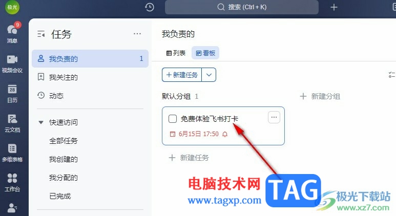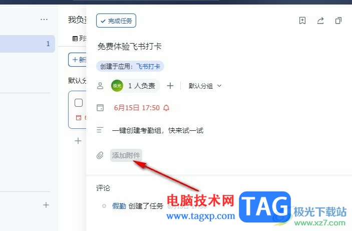 很多小伙伴在日常工作中都离不开飞书软件,因为在飞书中我们尅进行考勤打卡,可以分享文档,还可以创建共同协作任务,功能十分的丰富。在使用飞书的过程中,有的小伙伴想要在任务中添加附件,方便协作者能够更清楚任务内容,这时我们只需要打开该任务,然后在任务编辑页面中再打开添加附件选项,接着在文件夹页面中找到准备好的文件,再点击打开选项即可。有的小伙伴可能不清楚具体的操作方法,接下来小编就来和大家分享一下飞书在任务中添加附件的方法。