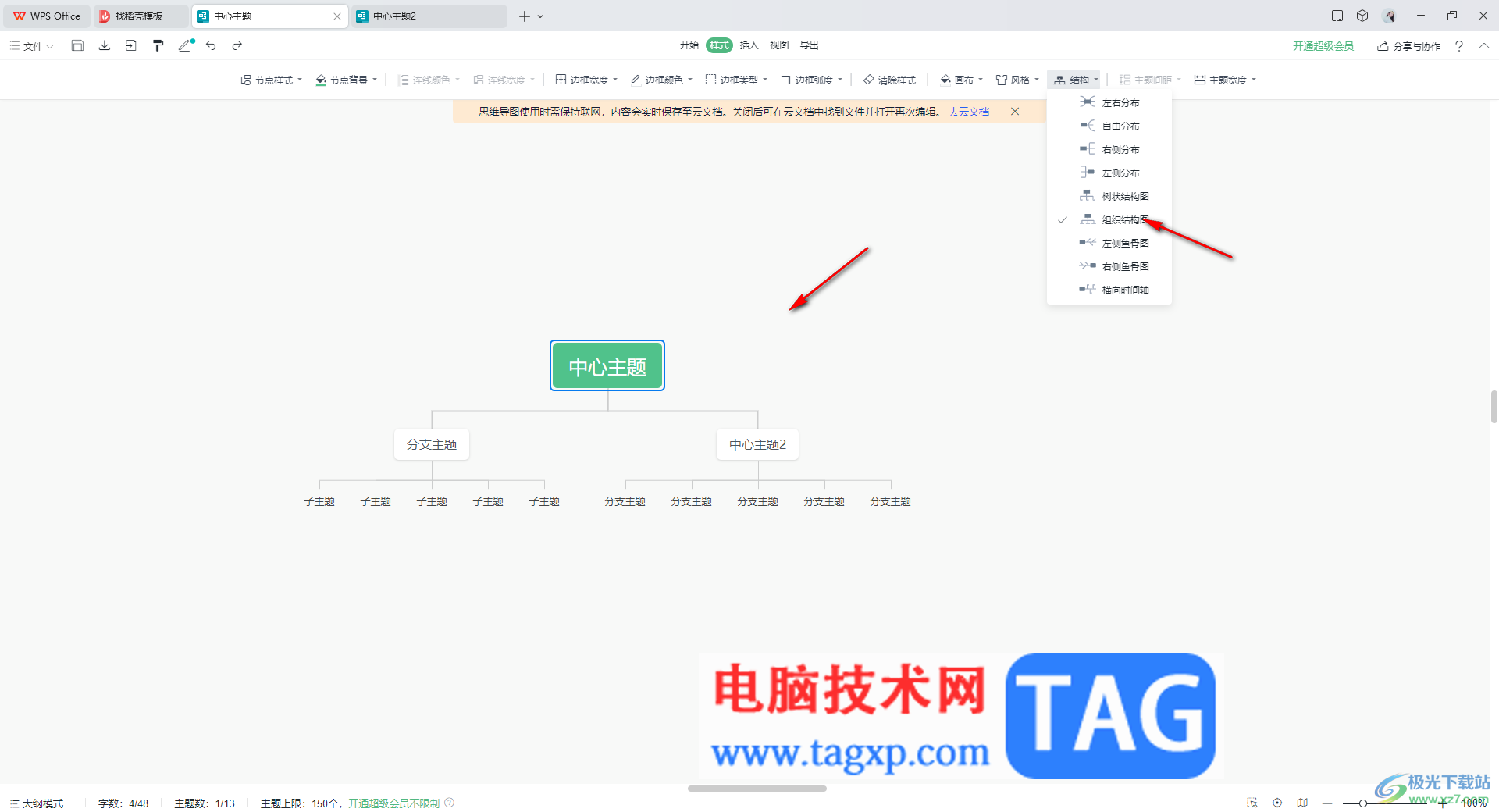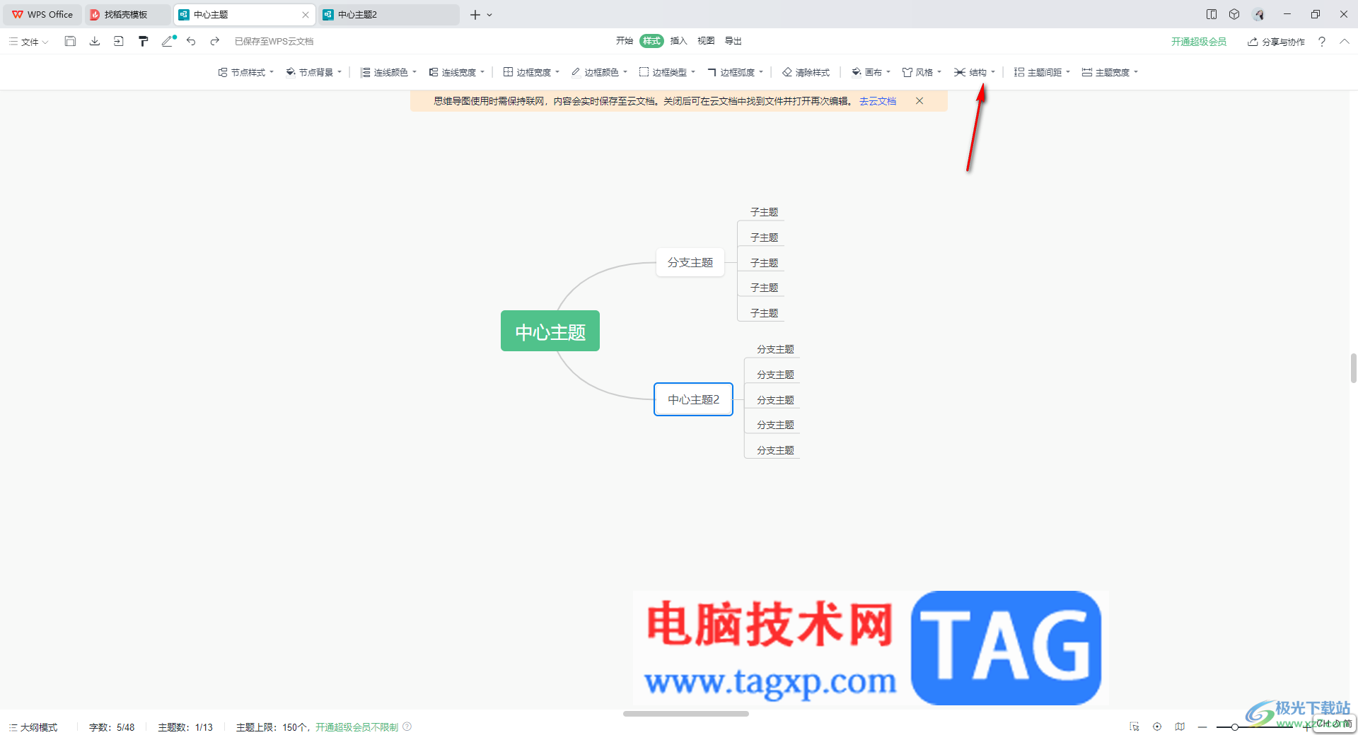 以上就是关于如何使用WPS思维导图更改结构的具体操作方法,当你需要进行设置导图样式的时候,那么可以通过以上的这样的方法进行更改即可,可以将制作好的导图更改成自己需要的结构样式,操作起来比较简单,感兴趣的话可以操作试试。