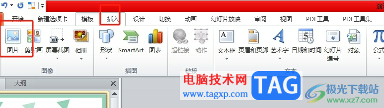 2.在页面上方的菜单栏中点击插入选项,将会显示出相关的选项卡,用户选择其中的图片选项