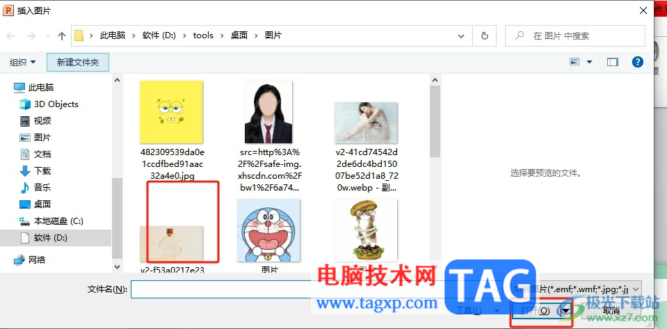 3.这时进入到插入图片窗口中,用户首先选中一张图片并按下打开按钮