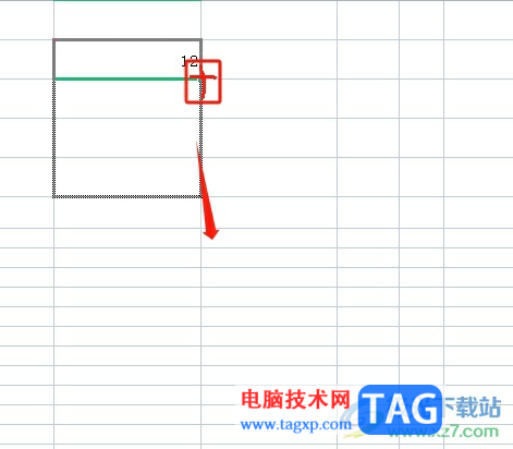 2.接着在含有数据的单元格中将鼠标光标移动到单元格的右下角,等待变成十字图标后用户按下鼠标左键向下拉
