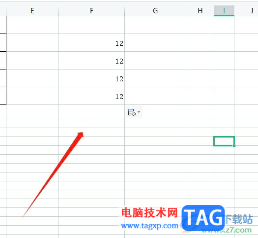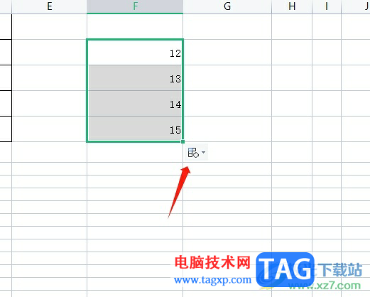 3.这时可以看到当前填充的内容是逐渐递增的数据信息,用户想要设置一拉下来全是一样的,就需要点击右下角的填充图标