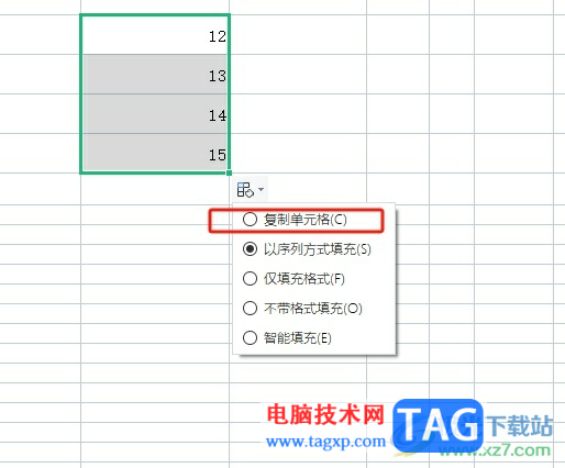 4.在弹出来的选项卡中,用户直接勾选复制单元格选项即可解决问题