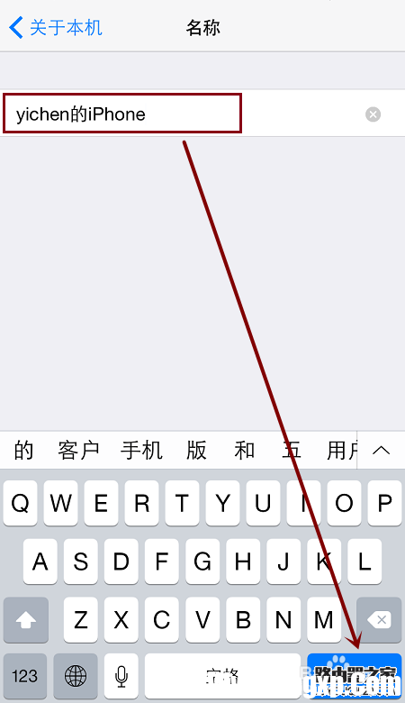 4.在本机名称窗口,输入新的iPhone本机名称,单击“完成”返回,就设置了新的iPhone本机名称了。
