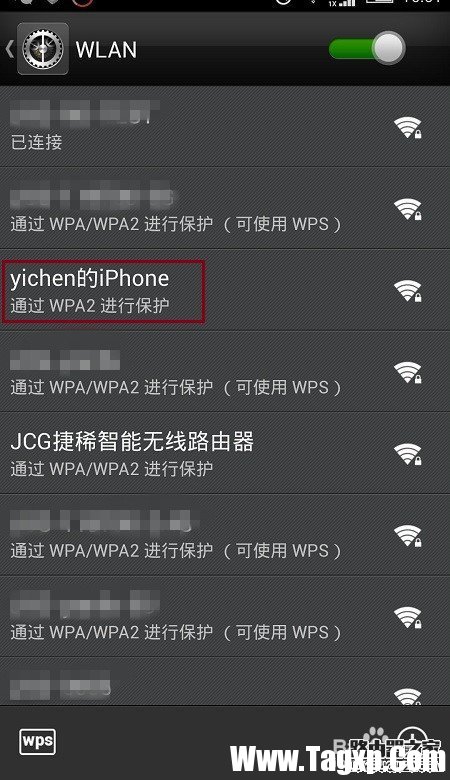 6.打开想要连接iPhone共享的WiFi个人热点的手机,扫描WiFi热点,就可以看到修改的iPhone共享个人热点名称了。在这里你可以把密码改成一个复杂的,别人猜不到的,所以当他们搜索到我们共享的热点,可是没有密码也连接不上的,放心不会蹭到你的流量哈哈。