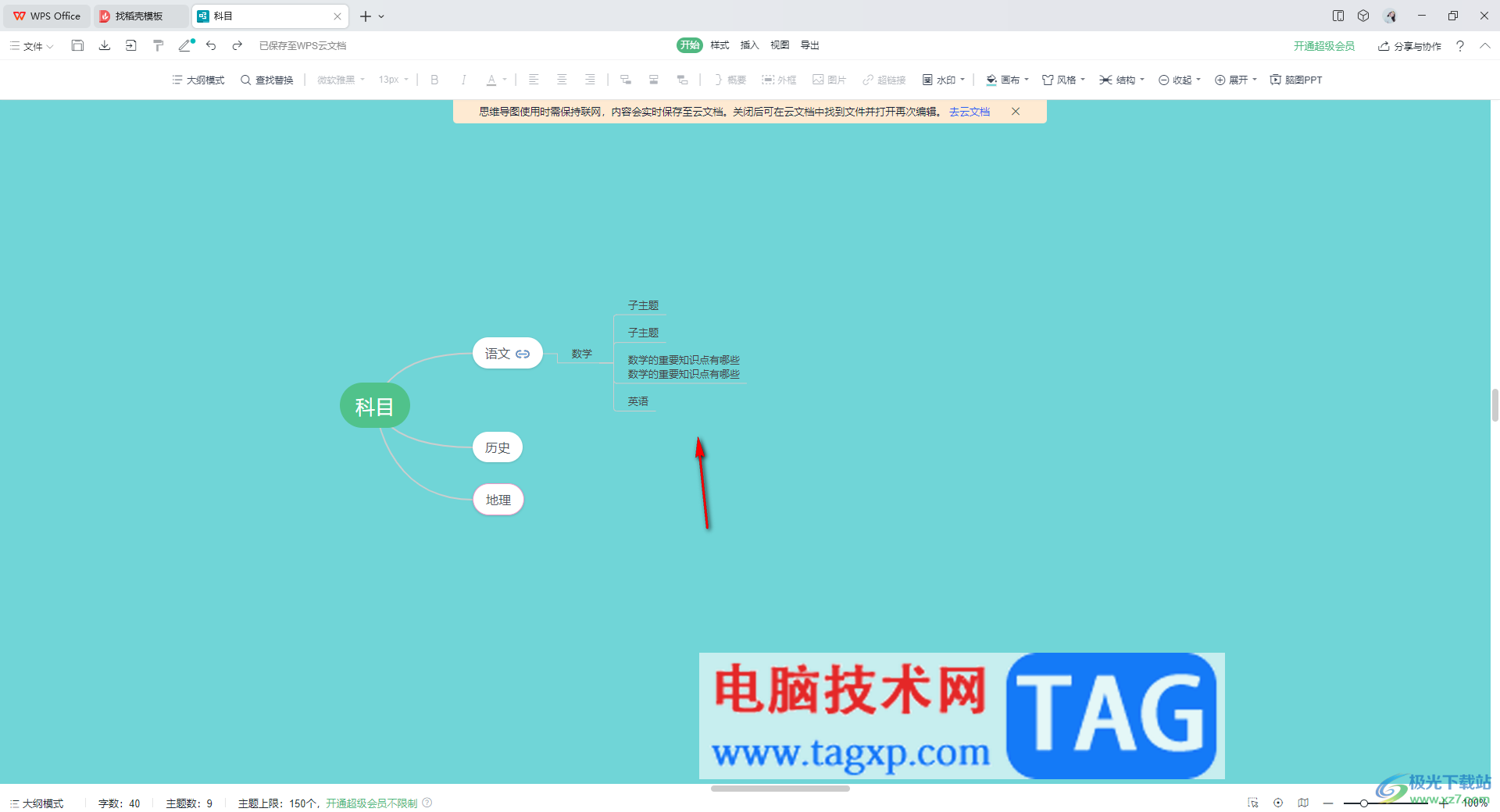1.首先进入到WPS思维导图中,将自己需要编辑的内容进行创建好。
