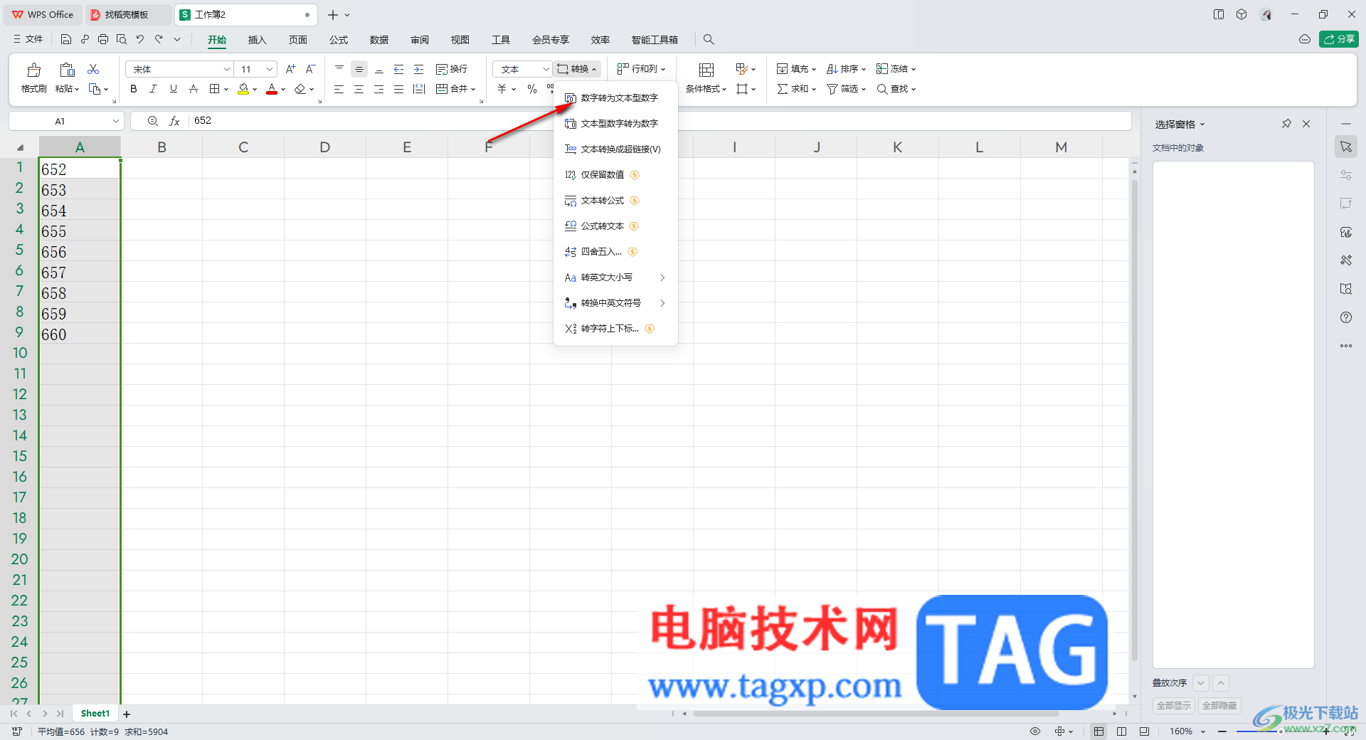 5.随后即可在打开的下拉选中将其中的【数字转换为文本型数字】选项进行勾选即可转换。