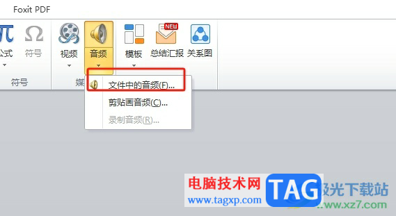 3.在弹出来的下拉选项卡中,用户选择其中的文件中的音频选项来设置