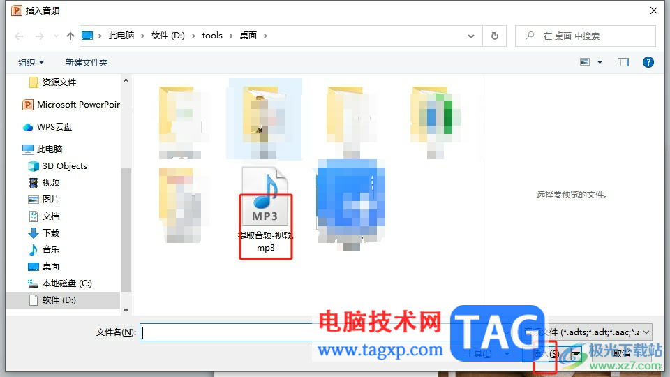 4.这时进入到文件夹窗口中,需要选择其中的音频文件并按下确定按钮