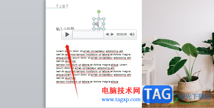 2.接着在页面上方的菜单栏中点击插入选项,将会显示出相关的选项卡,用户选择其中的音频选项