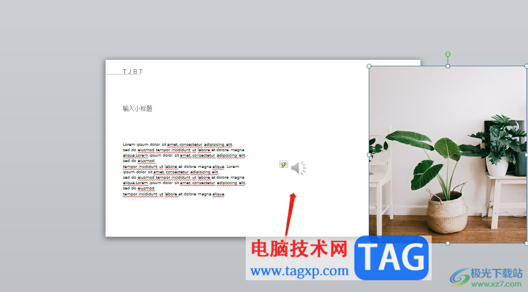 5.如果发现音频文件所在位置显示的图标被其它对象挡住时,直接移开对象就可以显示出音频文件的小喇叭了