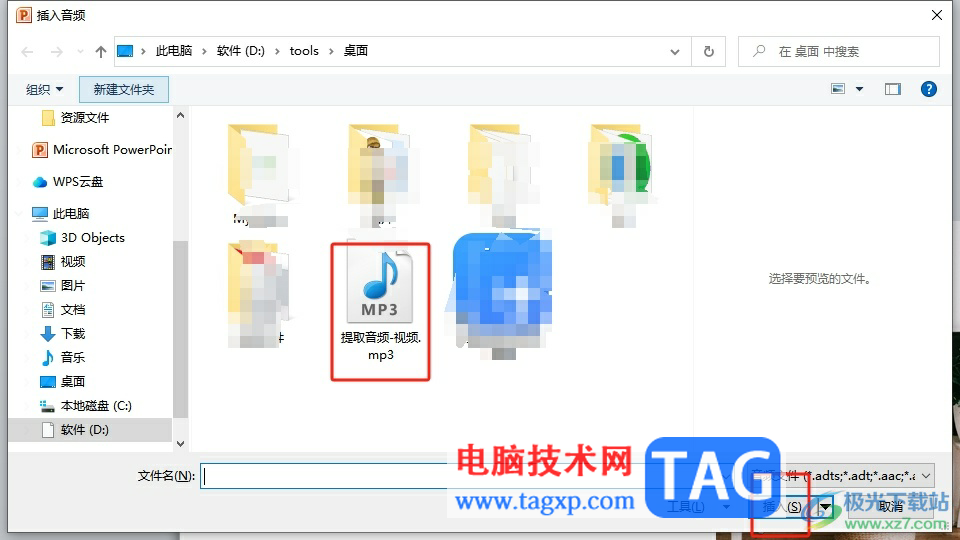 4.这时在弹出来的文件夹窗口中,用户选中需要的音频文件并按下打开按钮