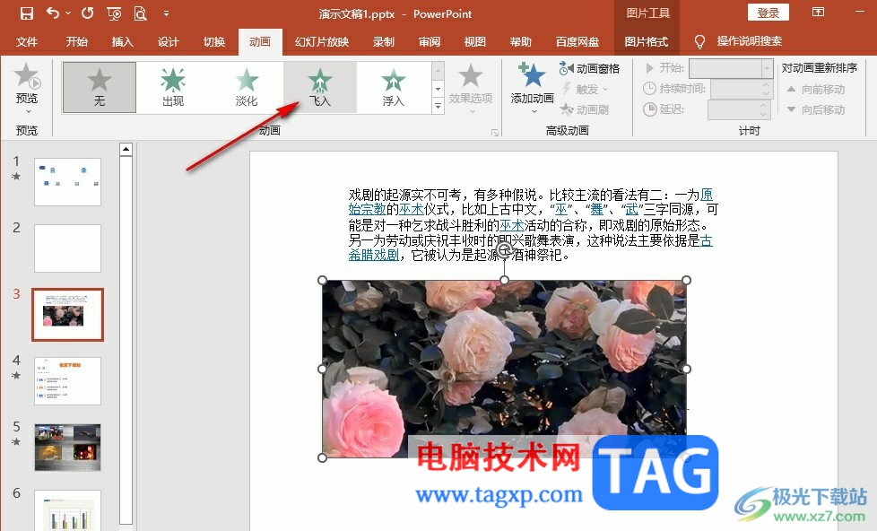 3、第三步,在动画的子工具栏中我们先给视频设置一个动画效果
