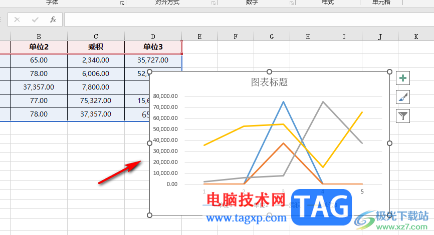 2、第二步,进入Excel页面之后,我们右键单击图表,然后在菜单列表中选择“更改图表类型”选项