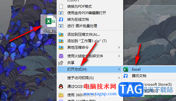 1、第一步,我们在电脑中右键单击一个表格文档,然后在菜单列表中选择“打开方式”选项,再选择“Excel”选项