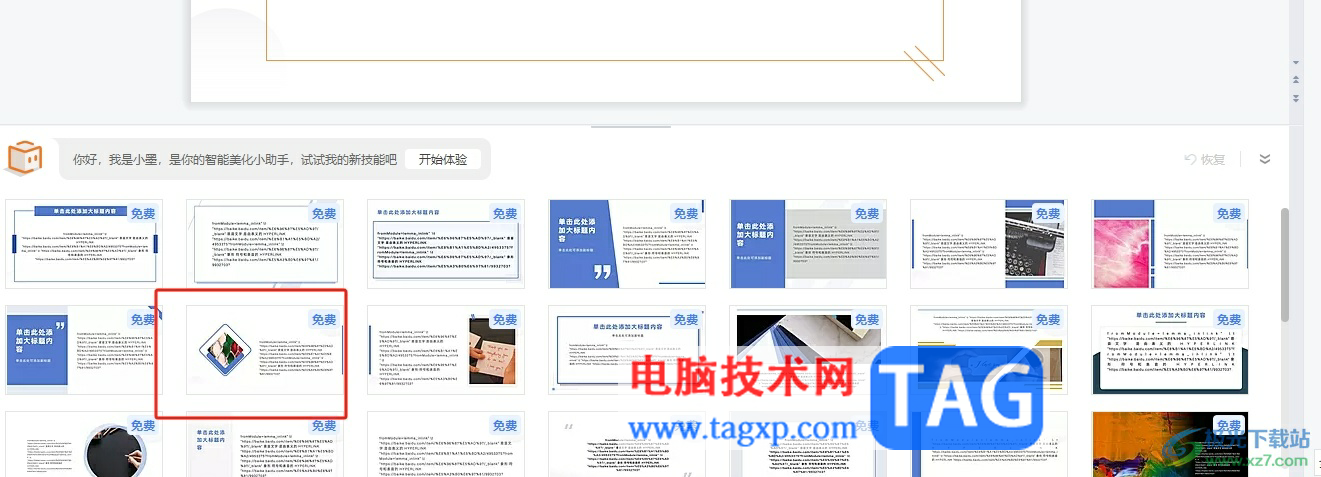 4.稍等一会儿后,会在编辑页面的底部弹出单页美化窗口,用户从中可以看到有各种各样的幻灯片样式,直接按照自己的喜好来选择即可
