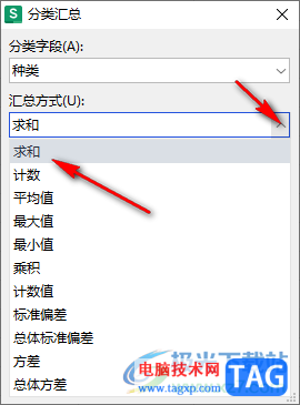 3.然后在设置一下汇总方式,这里小编选择【求和】,你可以按照自己需要来选择汇总方式。