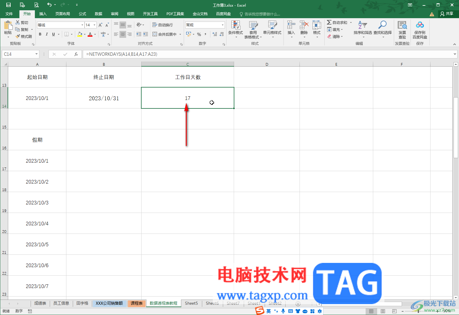 以上就是Excel表格中排除假期计算工作日天数方法教程的全部内容了。以上步骤操作起来都是非常简单的,小伙伴们可以打开自己的软件后一起动手操作起来,看看效果。