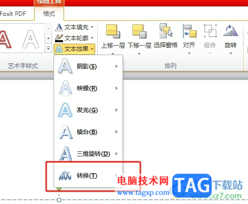 相信大部分的用户都很喜欢ppt软件,这款办公软件可以帮助用户顺利完成演示文稿的设置,因此ppt软件深受用户的喜爱,当用户在ppt软件中编辑演示文稿时,可以根据自己的需求来设置文字样式、幻灯片样式或是对象动画效果等,总之ppt软件中的功能能够很好的满足用户的需求,最近小编看到有用户问到ppt怎么将文字设置有弧度的问题,这个问题是是很好解决的,用户直接选中文字,接着在绘图工具的格式选项卡中找到文本效果选项,随后在转换选项卡中选择自己喜欢的弧度选项即可解决问题,那么接下来就让小编来向大家分享一下ppt将文字设置有弧度的方法教程吧,希望用户能够喜欢。