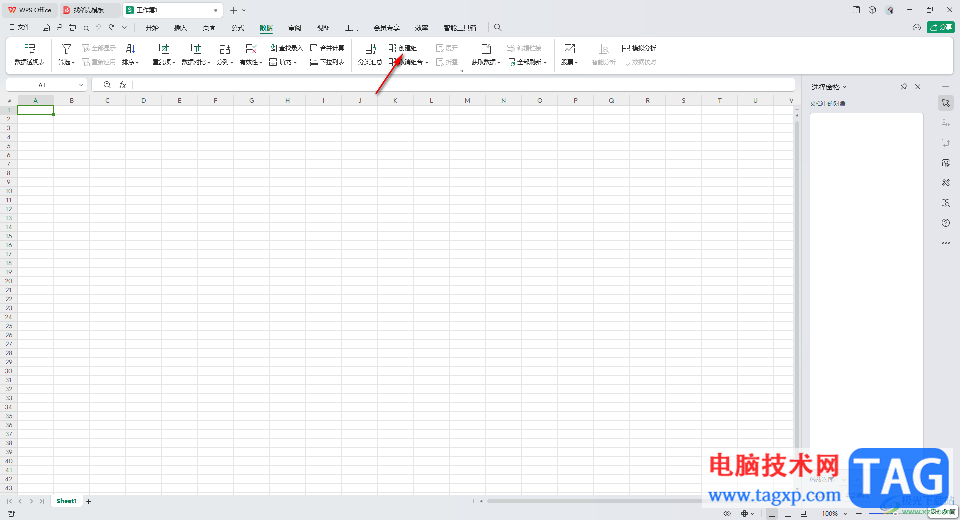 2.随后,在展开的工具栏中,找到【创建组】功能,点击该功能。